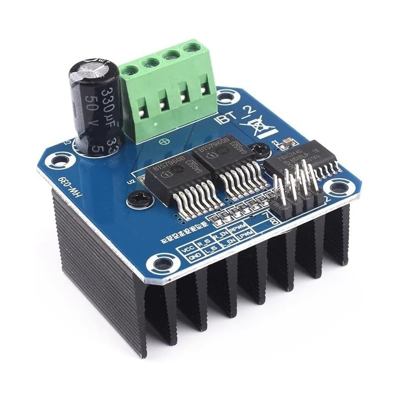 Es un controlador de motor de alta potencia diseñado para gestionar motores de corriente continua (DC) que requieren altos niveles de corriente. Utiliza el chip BTS7960, conocido por su capacidad de manejar altas corrientes de forma eficiente y segura, y es ideal para aplicaciones en robótica, vehículos eléctricos y sistemas de control de movimiento.